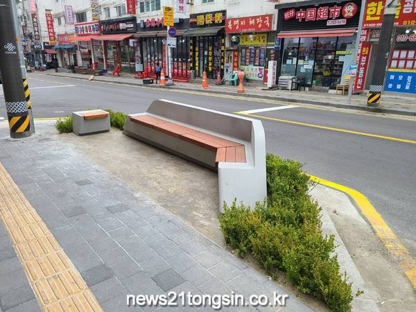 보도 폭을 2.5m에서 5m로 확장해 보행환경을 개선했고, ‘수원 아시아 푸드스트리트’ 상징 조형물, 디자인 벤치(6개소), 쓰레기 배출 거점시설(3개소), 전신주 커버시트 등 디자인 시설물을 설치해 디자인 특화 거리로 조성했다.