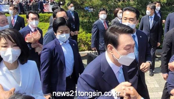 ▲ [뉴스21 통신. 무단 전재-재배포 금지.]윤석열 대통령은 오늘(10일) 취임사에서 "자유민주주의와 시장경제 체제를 기반으로 국민이 진정한 주인인 나라로 재건하겠다"고 밝혔다.
