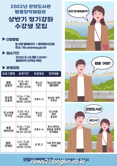 ▲ 사진=안양시안양시립 관양도서관에서 오는 5월 23일부터 ‘2022년도 웹툰창작체험관‘ 교육 프로그램을 운영한다.