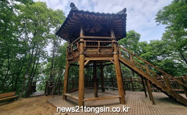 산책로에는 목재데크를 설치해 쾌적하게 등산할 수 있도록 정비하고, 정상부에는 전망대를 설치하여 휴식 공간을 조성했다.