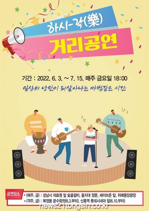 ▲ 사진=성남시성남시 수정구에서는 오는 6월 3일부터 7월 15일까지 매주 금요일 18시-19, 하시-락(樂) 거리공연이 열린다.