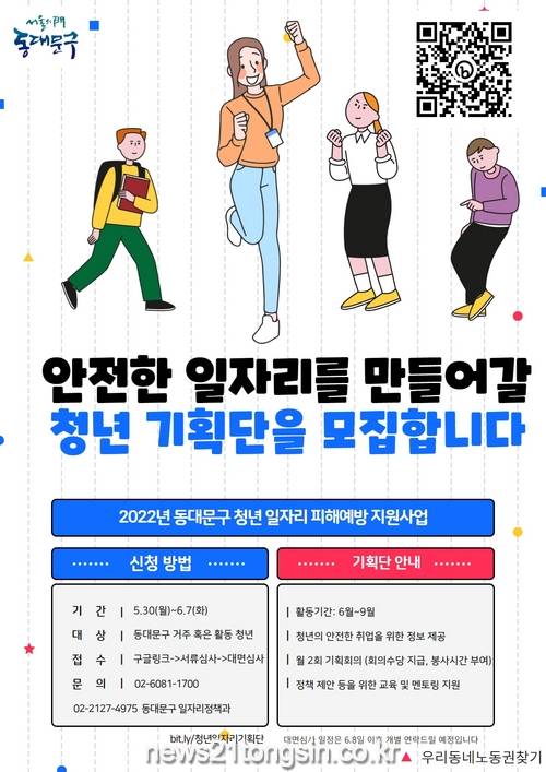 ▲  사진=동대문구 제공동대문구가 일자리 관련 범죄로부터 청년을 보호하고 안전한 일자리 가이드라인을 제시하기 위해 청년 안전 일자리 홍보 기획단 참여자를 모집한다.