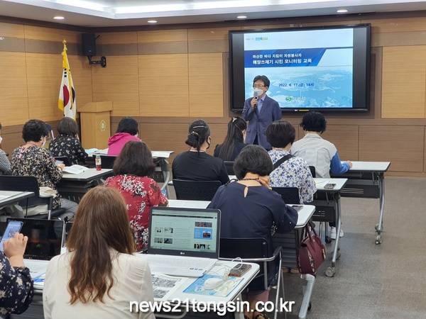 창원특례시는 17일 오후 2시 창원시청 제2별관 2층 회의실에서 바다 지킴이 자원봉사자 해양쓰레기 시민모니터링 교육을 실시하였다.