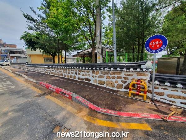 ▲  사진=이천시이천시 창전동은 지역 주민들이 공감하고 편안하게 생활할 수 있는 환경 조성을 위해 최근 창전8통 달맞이공원에 창전동의 오랜 역사와 전통을 반영한 한옥담을 설치했다고 밝혔다.
