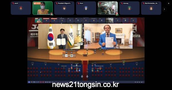 ▲  사진=제주특별자치도제주특별자치도와 포르투갈 마데이라주가 자매결연 15주년 기념행사를 가상현실 공간인 메타버스 플랫폼에서 7일 오후 5시(마데이라 현지 시간 오전 9시)에 성황리에 개최했다.