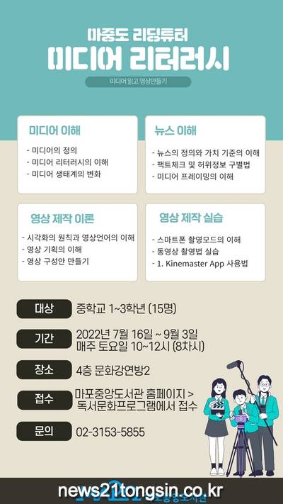 ▲  사진=마포구 제공 / 미디어쉐프 홍보 포스터마포구는 여름 방학을 맞이해 마포중앙도서관에서 이달부터 청소년을 위한 문화 프로그램을 진행한다고 14일 밝혔다.