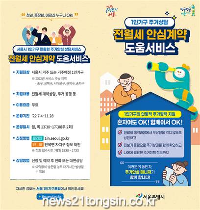서비스 신청은 송파구 부동산정보과(☏02-2147-3058) 또는 서울시 1인가구 포털(1in.seoul.go.kr)에서 가능하다.