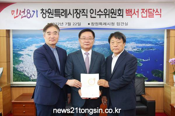 조영파 인수위원장은 “45일간의 인수위 활동과 민선 8기 청사진을 여기 백서에 모두 담아보려고 노력했다”며 “민선 8기의 시정비전 ‘동북아 중심도시 창원’ 실현을 위한 이행계획들이 성공적으로 추진되길 바란다”고 말했다.
