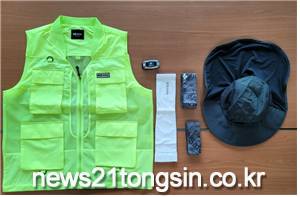 이번에 지원되는 꾸러미에는 야간에도 잘 보이는 메시 소재의 안전조끼, 휴대용 안전표시등과 폭염에 대비한 쿨토시, 쿨스카프, 모자이다.
