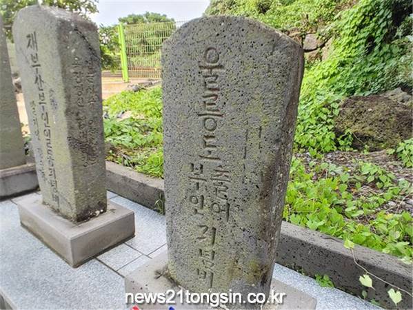 ▲ 제주 해녀의 울릉도 물질 기념비. 경상북도 제공제주해녀들이 광복절 77주년을 맞아 18일 독도를 방문했다.