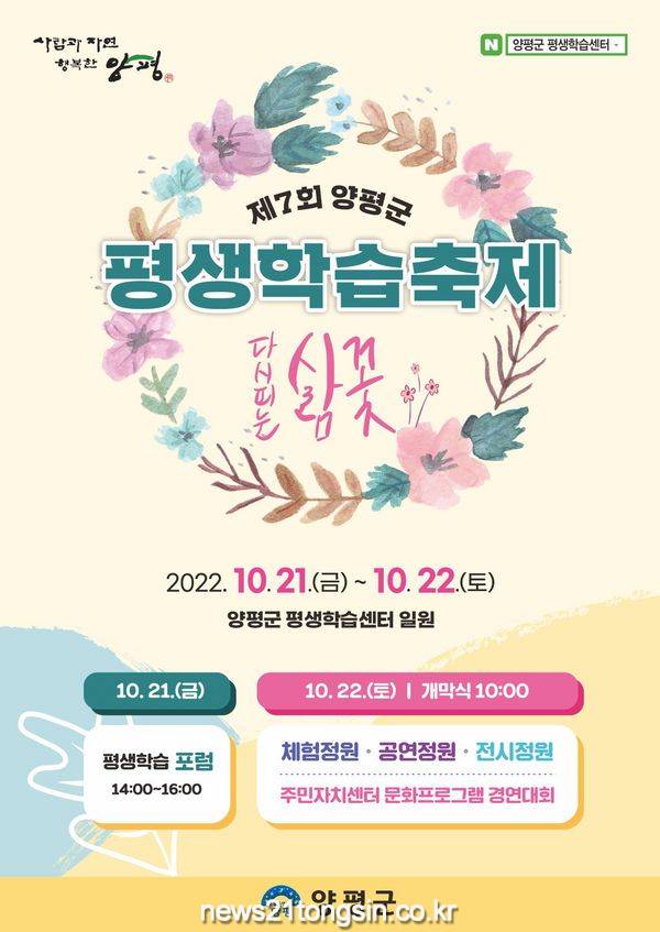 ▲  사진=양평군청양평군(군수 전진선)은 ‘2022 제7회 양평군 평생학습축제’를 오는 21일부터 22일까지 양평군 평생학습센터 일원에서 개최한다고 밝혔다.