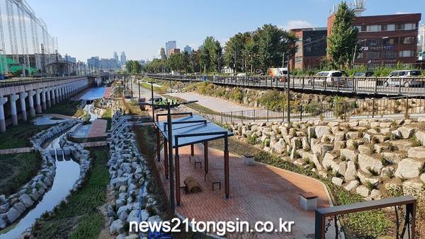▲  사진=성동구청서울 성동구(구청장 정원오)가 악취로 외면받던 용답동의 전농천을 4년간의 노력 끝에 자연친화 생태하천으로 재조성했다.