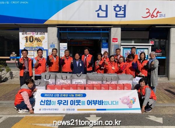 이번 ‘2022년 온세상 나눔 캠페인’ 행사는 신협사회공헌재단의 주요 사회공헌 활동 중 하나로 신협 및 임직원들이 자발적으로 모금한 재원을 통해 어려운 취약계층을 발굴하고 지원하는 사업으로, 양동신협에서는 난방취약계층을 위한 겨울이불과 생필품․건강식품 등을 담은 어부바 박스 전달, 결식 취약계층 지원을 위한 나눔냉장고 식품 후원으로 캠페인을 펼쳤다.
