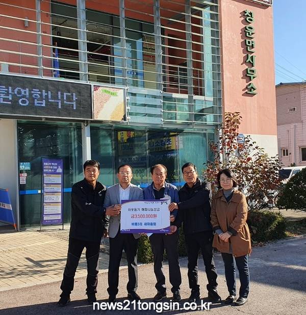 ▲  사진=양평군청청운면 비룡2리 새마을회(이장 전경섭)는 18일 청운면사무소를 방문해, 지난 10일 실시한 비룡2리 경로잔치 수익금 350만원을 저소득 취약계층을 위한 이웃돕기 성금으로 기부했다.