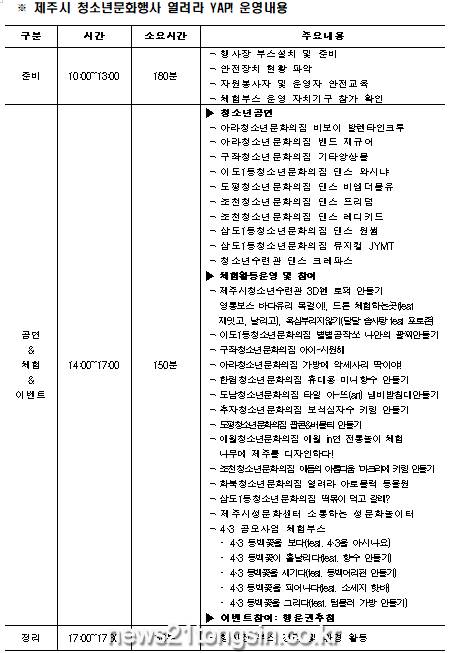 ▲  사진=제주시 캡처제주시는 오는 22일(토) 14시부터 17시까지 탑동 해변공연장에서 「청소년문화행사 열려라 YAP!」축제를 개최한다고 밝혔다.
