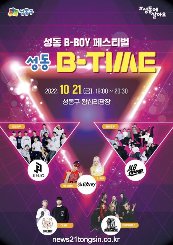 ▲  사진=성동구청서울 성동구(구청장 정원오)가 오는 21일 19시 왕십리 광장에서 비보이 페스티벌 ‘성동 B-TIME’을 처음 개최한다.