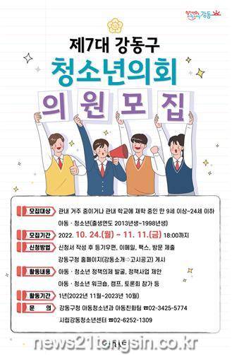 ▲  사진=강동구 제공강동구(구청장 이수희)는 오는 11월 11일까지 강동구 아동・청소년을 대상으로 ‘제7대 강동구 청소년의회’ 의원을 모집한다고 밝혔다.