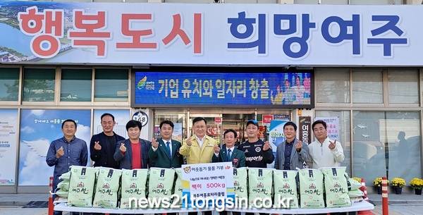 ▲  사진=여주시지난 28일 국제로타리 3600지구 여주여흥로타리클럽(회장 곽은구)에서 여흥동(동장 박창주)을 방문하여 여주 쌀 50포를 기탁했다.