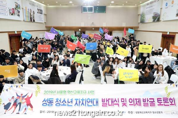 ▲  사진=2019년에 개최된 성동구 청소년 의제 발굴 토론회의 모습서울 성동구(구청장 정원오)가 오는 11월 12일 오후 2시 구청 3층 대강당에서 ‘청소년이 진짜 바라는 기발한 정책! 성동 청소년 의제 발굴 토론회’를 개최한다.