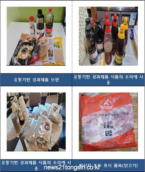 적발된 주요 위반 행위는 ▲유통기한 경과제품 보관 1건 ▲유통기한 경과제품 식품의 조리에 사용 4건 ▲원산지를 혼동하게 할 우려가 있는 표시 1건 등이다.
