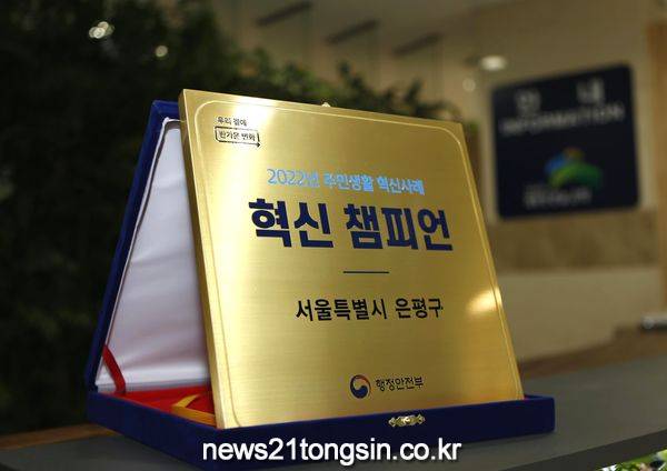 ▲ 사진=은평구는 행정안전부 `주민생활 혁신사례`에 ‘AI 기반 대형폐기물 처리 시스템 구축’이 우수사례에 선정돼 ‘혁신 챔피언 인증패’를 수상했다.서울 은평구(구청장 김미경)는 행정안전부 '2022년 주민생활 혁신사례' 우수기관에 선정돼 ‘혁신 챔피언 인증패’를 수상했다고 밝혔다.