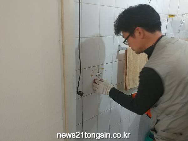 ▲ 사진=화재 위험 발생 우려가 높은 노후 콘센트를 교체하고 있는 마포구 직원망원동에 살고 있는 심진영 할머니(가명)는 요즘 근심 걱정이 많다. 차단기에 문제가 생겼는지 며칠째 전등이며 세탁기가 작동하지 않아 일상생활을 할 수 없기 때문이다.