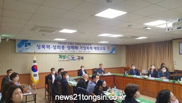 전남 구례군은 28일 김순호 군수를 비롯한 5급 이상 간부 공무원 34명이 참석한 가운데 유쾌한 젠더로 채현숙 소장을 강사로 초빙하여 성희롱․성매매․성폭력․가정폭력 공직자 4대 폭력 예방교육을 실시했다.