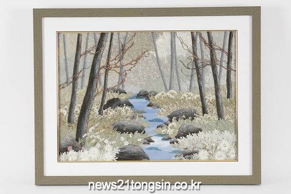 이 작품은 고즈넉한 숲속 겨울 풍경을 표현하였다. 파란 배경지를 이용해 흐르는 겨울을 표현하여 황량한 겨울보다는 서정적인 느낌의 겨울 풍경을 느끼게 만든다. 채도가 낮은 식물들을 사용하여 겨울의 하얀 느낌을 떠올리게 만들었다. 나무껍질을 이용하여 나무와 바위를 표현하였으며, 식물을 뿌리로 나뭇가지를 섬세하게 묘사하였다.