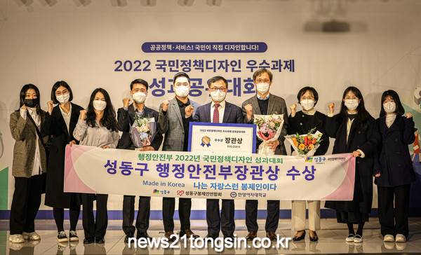 행정안전부는 지난 28일 대전 KW컨벤션센터에서 1, 2차 전문가·대국민 온라인 심사를 거쳐 선정된 10개 기관을 대상으로 성과공유대회를 개최했으며 성동구는 ‘Made in Korea 나는 자랑스런 봉제인이다’로 주제로 참여해 행안부장관상 수상하는 쾌거를 이뤘다.
