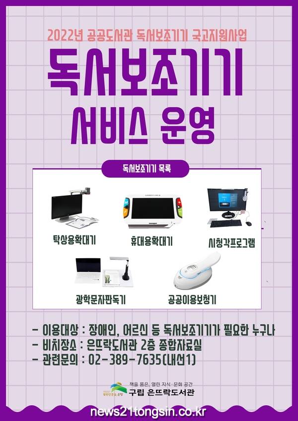 서울 은평구(구청장 김미경)는 국립장애인도서관에서 주관하는 ‘2022년 공공도서관 독서보조기기 국고지원사업’에 선정됐다고 밝혔다.