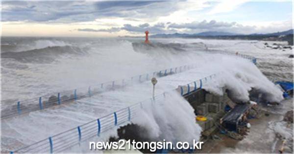 ▲ 사진=2020년 제9호 태풍‘마이삭’당시 삼척시 임원항 방파제 월파광경 / 강원도청 제공강원도환동해본부(본부장 최성균)에서는“재난 및 지역현안분야 특별교부세 22억 원을 확보하여 어선들의 안전사고 예방과 어업인들의 어항이용 불편 해소 등에 적극 대처하고 있다”라고 밝혔다.