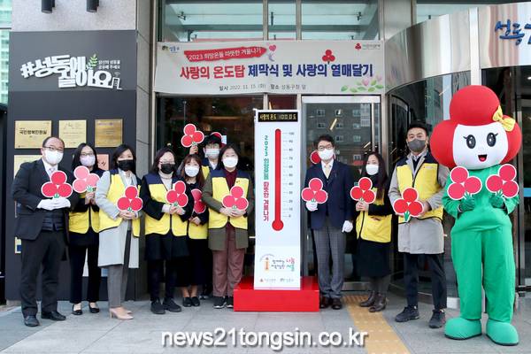▲  사진=지난 11월 ‘사랑의 온도탑 제막식’을 개최하는 모습 (사진 온도탑 오른쪽 정원오 성동구청장)서울 성동구(구청장 정원오)에서는 올해 공공요금이 가파르게 인상되어 예년보다 취약계층의 생활이 어려울 것으로 예상되는 바, 연중 모아온 성동구 나눔네트워크 사업비로 총 8,000여 가구에 난방비 5만 원을 지원한다.