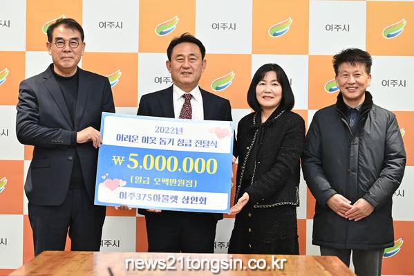 여주375아울렛 상인회(회장 이재권)는 12일 여주시청을 방문해 관내 소외계층을 위해 써달라며 성금 500만원을 기탁했다.