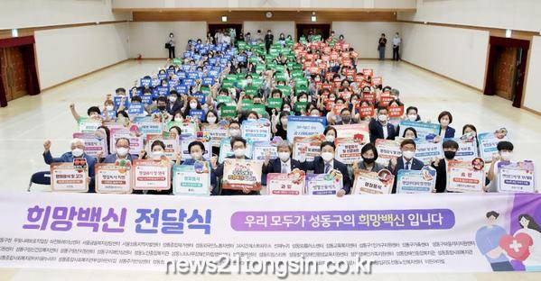 ▲  사진=지난 9월 민·관이 협력해 자원을 모으는 `희망백신 전달식`을 개최하는 모습서울 성동구(구청장 정원오)가 전국 229개 기초지방자치단체를 대상으로 실시한 ‘2022년 지역복지사업 평가’에서 민관협력 및 자원연계와 사회복지 부정수급 관리 2개 분야 ‘대상’을 수상하는 영예를 안았다.