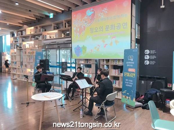 ▲  사진=성동구청 1층 책마루에 열리는 정오의 문화공연 개최모습서울 성동구(구청장 정원오)가 오는 12월 21일 12시부터 성동구청 1층 성동책마루에서 ‘2022 정오의 문화공연 결산공연’을 개최한다.