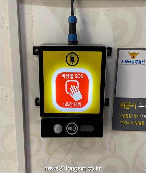 기존 화장실 비상벨은 외부의 경광등 및 사이렌 작동만 가능해 경찰 출동은 인근 구민의 신고에 의존하였으나, 이번 공중화장실에 설치된 ‘스마트 안심 비상벨’은 위급상황 발생 시 성동경찰서 112종합상황실로 자동 연결된다. 화장실 내부 중앙 메인 비상벨이나 보조 비상벨을 누르면 성동경찰서로 연결되어 직접 통화가 가능해 더욱 신속하게 대응할 수 있게 해주는 시스템이다.