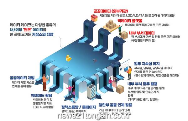 ▲  사진=‘성동형 데이터 플랫폼’의 데이터 레이크 구현체계서울 성동구(구청장 정원오)가 데이터 기반 행정 활성화를 위하여 구 데이터의 정확하고 지속적인 갱신을 지원하는 데이터 레이크(Data lake, 데이터 저장소) 기반 성동형 데이터 플랫폼 구축 완료했다.