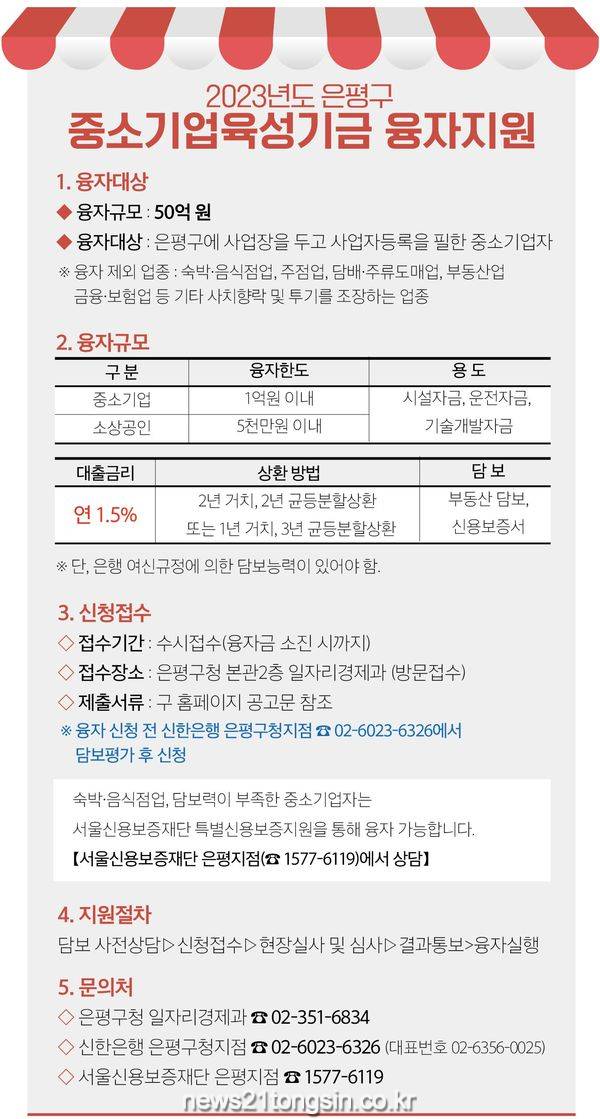 ▲ 사진=은평구 중소기업육성기금 융자 및 특별신용보증 지원 안내문서울 은평구(구청장 김미경)는 ‘2023년 중소기업육성기금 융자지원 사업’을 실시한다고 밝혔다.