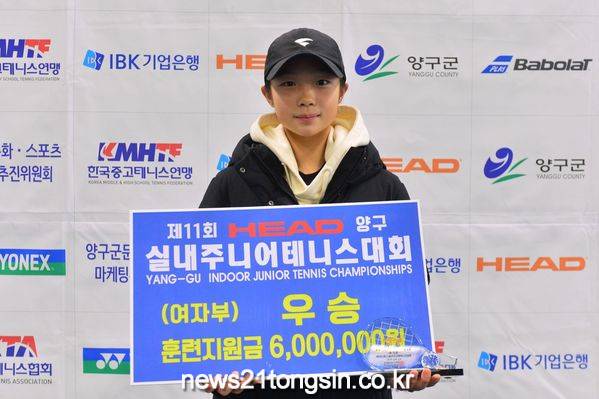 ▲ 사진=이서아(춘천SC)가 요넥스 대회(14세부)에 이어 18세부 대회인 제11회 HEAD 양구실내주니어 여자단식 우승을 차지하며 2주연속 여자부 최강에 오르는 쾌거를 이뤄냈다/대한테니스협회 제공김세현(양구고)과 이서아(춘천SC)가 제11회 HEAD 양구 실내주니어테니스대회 남.여 단식 챔피언에 올랐다.