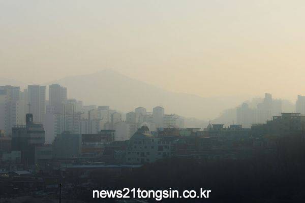 ▲ 사진=마포구청에서 바라본 성산2동, 짙은 미세먼지와 안개가 뒤엉켜 성산2동 주택가와 북한산이 흐릿하게 보이고 있다.마포구(구청장 박강수)가 난방부문의 미세먼지 배출을 적극적으로 해결하고 최근 급등한 난방비 부담을 줄이기 위해 ‘2023년 가정용 친환경보일러 보급 지원사업’을 시행한다고 9일 밝혔다.