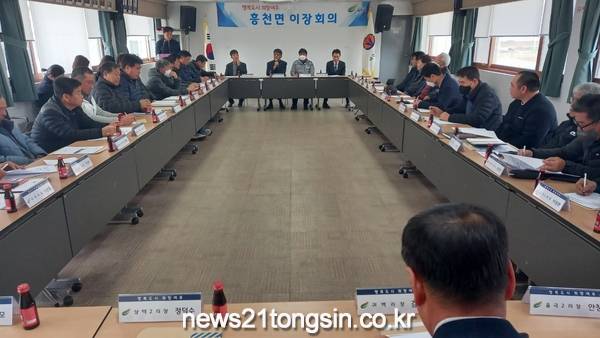 ▲  흥천면, 2월 1차 이장회의 개최흥천면(면장 이상면)은 지난 10일 흥천면 행정복지센터에서 26개리 마을 이장, 기관단체장이 참석한 가운데 1월 1차 이장회의를 개최했다. 회의에는 경규명의원, 흥천농협장, 흥천파출소장, 벚꽃축제위원장등이 참석하여 시.면정 홍보 및 당면 현안에 대하여 협의하였다.