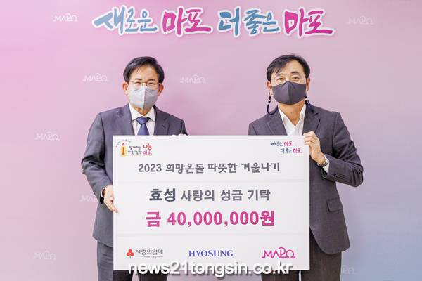 ▲ 사진=(주)효성이 마포 2023 희망온돌 따뜻한 겨울나기 사업에 4천만원의 성금을 기탁했다.마포구(구청장 박강수)는 지난해 11월부터 이달 14일까지 3개월간 ‘2023 희망온돌 따듯한 겨울나기 사업’을 추진해 총 11억 3천만 원의 성금품이 모금되었다고 밝혔다.