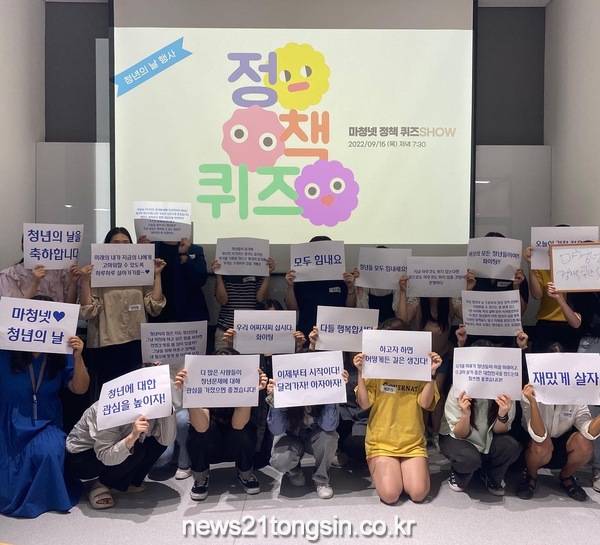 ▲ 사진=마청넷 위원들이 청년의 날을 맞아 정책퀴즈쇼에 참여하고 있다 마포구(구청장 박강수)는 청년의 목소리를 대변할 ‘2023년 마포 청년정책네트워크’ 위원 19명을 내달 2일까지 모집한다고 밝혔다.