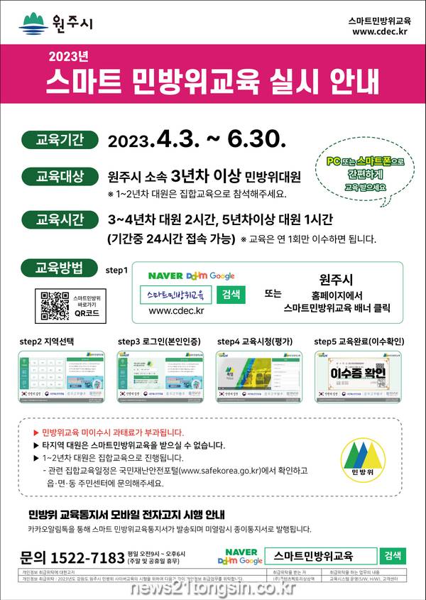 사이버교육은 스마트민방위교육 홈페이지(www.cdec.kr)에 접속, 이름과 생년월일을 입력, 본인 인증을 통해 로그인하면 된다.