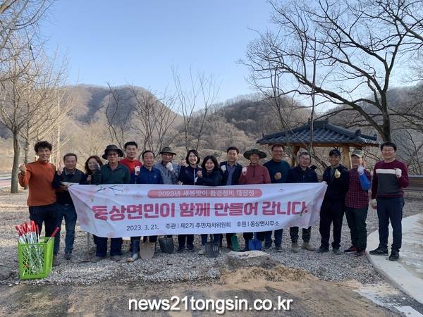 지난 21일 동상면은 새마을부녀연합회, 제2기 주민자치위원회, 동상면사무소 직원 50여명이 참여한 가운데 일제 대청소와 대아리 도로변에 나무를 식재했다.
