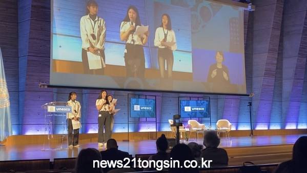 ▲ 광주 학생 대표, 유네스코 본부에서 차별 없는 세상 외치다 / 사진=광주시교육청광주시교육청은 민주·인권 국제교류단 학생들이 지난 21일 유네스코 파리 본부에서 열린 ‘유네스코 글로벌 마스터 클래스’ 국제 무대에서 발표를 진행, 뜨거운 관심을 받았다고 밝혔다.