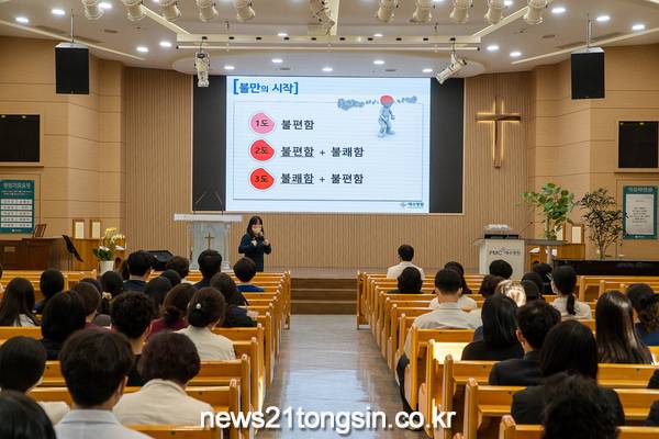 본원 예배실에서 신지훈 서섹스 웨이(success way) 대표 원장을 강사로 초빙해 1시간 동안 진행했으며, 강의는 병원에서 발생할 수 있는 사례들을 분석해 민원에 대한 응대법과 감정 컨트롤에 대한 주제로 더 나아가 감정 힐링 방법들을 소개했다.