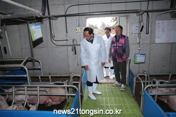 우선 90년대 설치된 노후시설과 현재 추진 중인 현대화 축사(무창화, 악취 포집시설 등)등 완료 사업장을 차례로 점검하여 농가별 노후시설 개선 및 악취 저감시설 설치 등 축산 냄새 저감 추진 상황을 확인하였다.