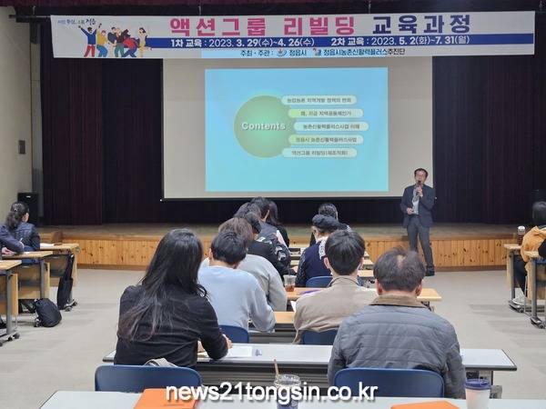 ▲ 정읍시= 농촌신활력플러스사업 ‘액션그룹 리빌딩’ 교육뉴스21통신전북/김문기기자=정읍시 농촌신활력플러스사업 추진단은(단장 안태용) 지난 29일 제2청사 3층 대강당에서 신활력플러스사업 역량강화사업인 ‘액션그룹(공동체) 리빌딩’ 교육을 진행했다.