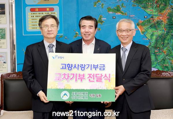 ▲ 고향사랑기부금 교차기부 전달식보령시는 30일 시장실에서 김동일 시장과 정읍아산병원 임경수 병원장, 보령아산병원 최종수 병원장 등 관계자가 참석한 가운데 고향사랑기부금 전달식을 개최했다.